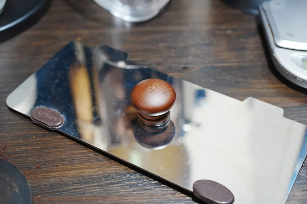 純正の木製パーツは左右のダイヤルと、トップの圧力調整パドル。